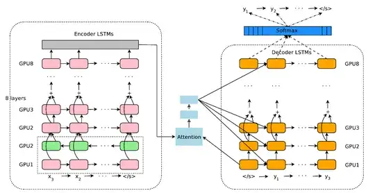 I'm trying to read this paper describing Google's LSTM architecture for machine translation. It features this diagram on page 4: