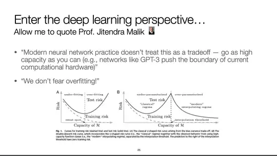 - It has been observed that if you keep increasing the capacity of some model (assuming proper regularization) your training error goes to zero (the interpolation threshold) and, unexpectedly, the generalization (test) error decreases too as the capacity is increased!