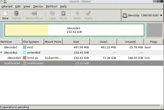 I have a slight problem. After resizing my Ubuntu LVM2 Physical Volume from 250G to 72G, Gparted was able to let me click on the resize button on /dev/sda5
