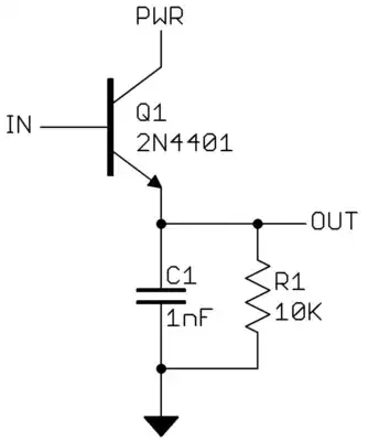 A short positive spike comes in and causes C1 to be charged up. Even if the spike goes away immediately after, the voltage on C1 will stay high and decay with a time constant of 10 µs, which is a half-life of 7 µs. If you don't need to detect another spike for a few µs after one, then this sort of spike-stretcher relaxes the sample requirements on the processor.
