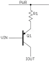 Let's say you want the 0-350 mA output current range controlled by a 3.5 V range of voltage. In that case, R1 would be 100 Ω, and the control voltage range would be PWR - 700 mV to PWR - 4.2 V.