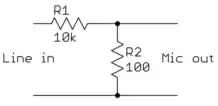 How would I design a circuit that converts a line level signal to be able to be fed into a microphone input? The input impedance of the microphone jack is 2 kohms.