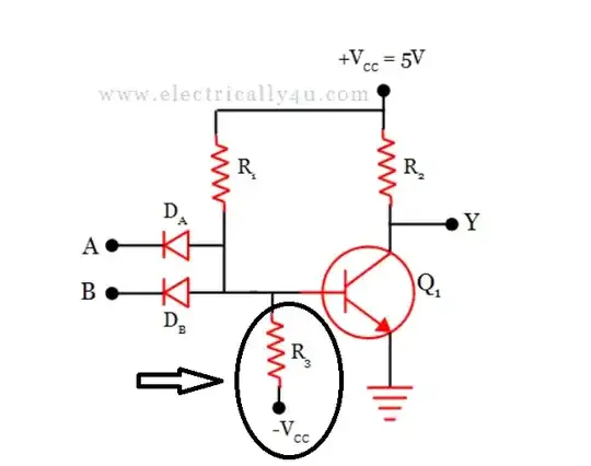 3Without pulling base to -Vcc the transistor can be always open because when A and B are grounded the base voltage would be about 0.7V. – Apr 20 '21 at 18:04