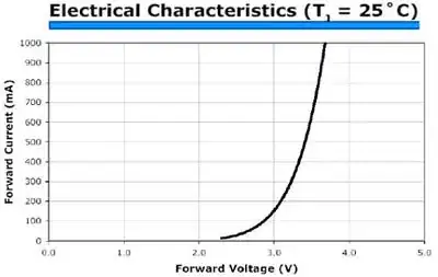 The following is a current voltage graph of a typical LED. Unlike resistors, which have a linear voltage current relationship, LEDs have an exponential relationship. Which means that after a certain voltage (operation voltage is typically round 2V for small LEDs), the current increases greatly for just a small further increase in voltage.