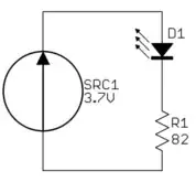 In this example I assumed the LED is rated for 20 mA and that you want to make it about as bright a it can be. Figure a normal green LED drops about 2.1 V. That leaves 3.7V - 2.1V = 1.6V accross R1. By Ohm's law we calculate the value of R1 to allow 20 mA.