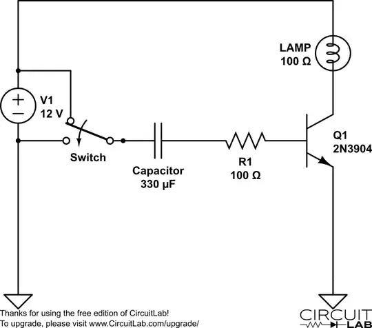 I'd like to do the same thing using a transistor instead of a relay but so far I haven't been able to make it work in CircuitLab. Can I convert a toggle switch to momentary switch using a transistor and capacitor?
