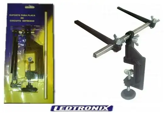 But the best tool I tried was this PCB holder (sorry, but I can't find an equivalent product in a website writen in English).