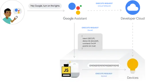 I stumbled upon this picture (source) - it describes request lifecycle, and I am wondering if it is possible to use my Raspberry Pi 4 instead of Google Nest/Smart Speaker (which is located near "JS" thing).