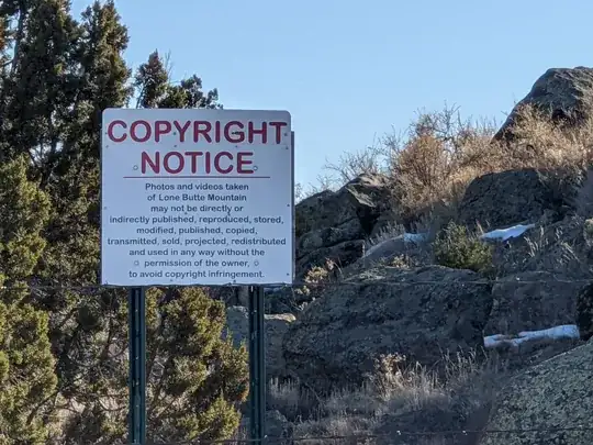 - No under the US First amendment there is generally a right to say even false things. But if the landowner attempts to enforce this "copyright" it would be considered frivolous and any court proceeding would be promptly tossed out. The sign gives the landowner no rights s/he would not otherwise have.