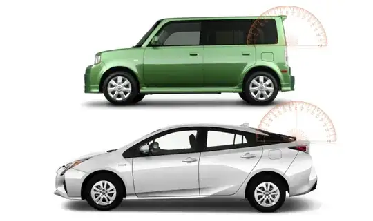 There’s two common cars with hatchbacks and rear-window wipers. The top car has a rear window angle of about 80°, almost vertical, and the bottom car has a rear window of about 20°, almost horizontal. If the angle of the rear window is truly a factor in why a rear wiper may or may not be needed, then the range where a wiper must seem to make sense is vast, and would include nearly every sedan.