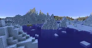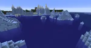 A variant of the ocean biome with dark indigo water at the surface. Like the cold ocean, it has a gravel seabed and squid swimming about. However, the water's surface is frequently broken up by patches of ice and large icebergs, consisting of packed ice and blue ice, and occasionally topped with snow blocks and snow. Strays, drowned, polar bears, and rabbits can spawn here, but dolphins can't. Salmon and cod may also spawn here. |