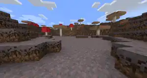This rare biome consists of a mostly flat island and has mycelium instead of grass as its surface. Mushroom fields are always adjacent to a deep ocean and are isolated from other biomes, and they are typically a few hundred blocks wide. It is one of the few biomes where huge mushrooms can generate naturally, and where mushrooms can grow in full sunlight. No mobs other than mooshrooms, bats, and glow squid spawn naturally in this biome, including the usual night-time hostile mobs. This also applies to caves, mineshafts and other dark structures, meaning exploring underground is safe. However, monster spawners still spawn mobs, wandering traders along with their llamas can spawn, raids can still spawn illagers, the player can still breed animals and spawn mobs using spawn eggs and insomnia still attracts phantoms. |