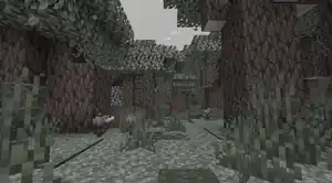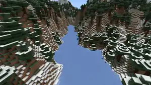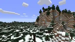 Similar to the standard taiga, except much of the biome is covered in snow. Ferns and large ferns generate here commonly, however sweet berry bushes generate more rarely than in the regular taiga. Wolves, foxes, rabbits and cold animal variants can spawn here. One may also find an igloo nestled between the trees, making it one of the three biomes where igloos naturally generate. Villages and pillager outposts may also generate here. Villages use the same architecture as taiga villages, but the villagers wear snowy biome outfits. |