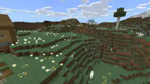 The meadow is an elevated grassy biome found in plateaus near mountain ranges. It is filled with patches of flowers and turquoise-green short grass and tall grass. All small flowers generate except blue orchids, tulips, lilies of the valley or wither roses. Rarely, a lone oak or birch tree can generate and always has a bee nest. Both pillager outposts and plains villages can generate in this biome. Sheep, donkeys and rabbits are the only passive mobs that spawn in this biome. Ocelots may also spawn here. |
