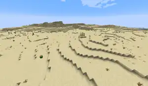 Generated where oceans meet other biomes, beaches are primarily composed of sand. Beaches penetrate the landscape, removing the original blocks and placing in sand blocks. These are also useful for fishing. Buried treasure can be found under few blocks of sand, and an occasional shipwreck can also generate here. Passive mobs other than turtles do not spawn on beaches. |