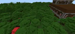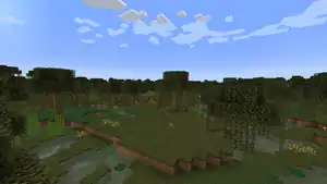 This biome is mainly composed of dark oak trees, which create a mostly closed roof of leaves. Oak trees, birch trees, and huge mushrooms can also be found occasionally, and the ground is covered with leaf litter. Trees in this forest are so densely packed that some areas are dark enough for hostile mobs to spawn, even during the day. On rare occasions, a woodland mansion may generate. |