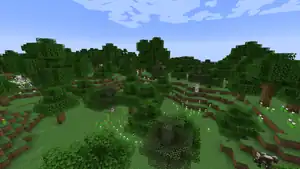 A common biome with many oak and birch trees and a fair amount of short grass, mushrooms and flowers. The ground beneath the trees is covered with leaf litter. Wolves can spawn in this biome. |