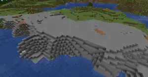 The first image of a stony shore (then called cliff) biome, provided by Jeb. -