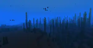 A variant of the ocean biome, with dark blue water at the surface. Like regular oceans and frozen oceans, its floor is made up of gravel, though occasional patches of dirt can be found. Kelp and seagrass generates here. Salmon and cod can spawn in cold ocean biomes alongside squid and dolphins. Drowned may also spawn here at night and during thunderstorms. |