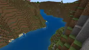 A biome that consists of water blocks that form an elongated, curving shape similar to a real river. Rivers cut through terrain or separate the main biomes. They attempt to join up with ocean biomes, but sometimes loop around to the same area of ocean. Rarely, they can have no connection to an ocean, instead forming a loop, or ending in a swamp or far inland. The grass has a dull aqua tone, much like the ocean, and trace amounts of oak trees, bushes, and firefly bushes tend to generate there as well. Rivers are also a reliable source of clay. These biomes are good for fishing, but drowned can spawn at night and during thunderstorms. In Bedrock Edition, mobs other than salmon, squid and drowned cannot spawn in this biome, even underground, except from a monster spawner. |