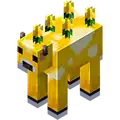 The moobloom was a buttercup-covered variant of the mooshroom found only in Minecraft Earth and in Minecraft Dungeons. It was a rare drop of cow tappables. Mooblooms are a yellow variant of mooshrooms, sprouting buttercups instead of mushrooms. Mooblooms left a trail of yellow flowers as they walked. Each flower they plant had an 80% chance of being a dandelion, or a 20% chance of being a sunflower.