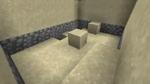 If a cave generates underneath sand, gravel, or red sand, the blocks remain stationary until they receive a block update. If a single block is updated and falls down, neighboring blocks are updated in a chain reaction that can cause the collapse of an entire region of gravity-affected blocks.