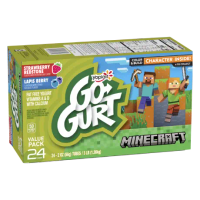 Enjoy fun and delicious taste adventures with Go-GURT Minecraft Strawberry Redstone and Lapis Berry Kids Fat Free Yogurt Tubes. The easy to open kids yogurt tubes are a convenient on the go snack or part of an easy gluten free breakfast. Kids can interact with the world of Minecraft by coloring and building the Minecraft Character inside the box - 4 to collect. Pack frozen for school lunch box snacks. Portioned in two ounce yogurt tubes, this yogurt variety pack contains 12 Strawberry Redstone and 12 Lapis Berry yogurt individual snacks. Yoplait Go-GURT is a snack made with live and active yogurt cultures. Each kids yogurt tube contains no high fructose corn syrup and no colors from artificial sources. Every serving contains vitamins A and D and is a good source of calcium. Store in the refrigerator and keep cold until you're ready to enjoy. For best product quality, do not refreeze after thawing. Yoplait brings goodness to everyday moments, one serving of yum at a time.