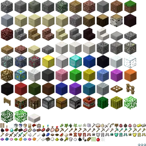 | v0.3.2 | ![]() Added icons for furnaces, lapis lazuli blocks, spruce and birch leaves, gold ingots, iron ingots, iron, diamond, and gold tools, glass panes, eggs, and all saplings. Re-added icons for diamond ore, lapis lazuli ore, and coal ore. Removed icons for TNT, all dyes except cactus green and lapis lazuli, bones, string, and gunpowder. | ||||||