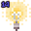Each light block has an associated light level, which can be any value from 0 to 15. In the player's inventory, light blocks display their light level in the top-left corner with a unique sprite for each light level.
