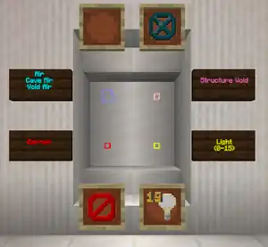 | 22w45a | Moved light blocks behind the "Operator Utilities" tab in the Creative inventory. The tab is available only if cheats are enabled and the "Operator Items Tab" option in the controls menu is turned on. | ||||||
