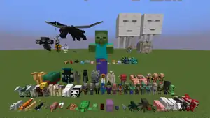 A render depicting various animals and monsters (collectively known as "mobs") from the game.