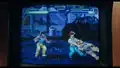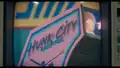 At least two areas are shown, presumably the same level. The first is an alleyway with a tiled road at night, large boilers and vents visible. The second is a poor condition street during a rainstorm, with a visibly broken car and shattered windows. The ground is covered in puddles and cracks, with a trash can placed nearby. When a new high score is achieved within the game, the two characters will walk up and do a handshake. It is unclear if this occurs in normal gameplay or was specifically installed for the competition.