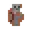 Pixel artwork of Ari holding a skull pottery sherd. -