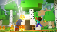 Steve playing Minecraft on the fictional Blockatron 500. -