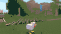 A Super Duper pig riding a minecart passes by a chicken, converting it instantly. Wolves patrol a snowy plains biome and get the upgrade in milliseconds, while a villager appears out of nowhere. A pig strolls through a badlands biome, and is transformed into a creeper. As Melissa continues singing, the biome changes to a desert, which frightens the creeper. A chorus of llamas appear, as a villager interjects. The biome then changes to a snowy plains, as a squid leaps out of the river and chickens fall from a hot air balloon, transitioning Melissa to a pond.