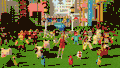 Stepping across lily pads, Melissa jumps off a cliff into a cityscape, her fall apparently broken by an explosion. Somehow okay, many more mobs begin to dance with her, including Steve, Alex, and many characters from skin packs, climaxing the video as it reveals a huge collection of floating terrain. In the final shot, Melissa is back on the stage, and knocks over a Super Duper zombie.