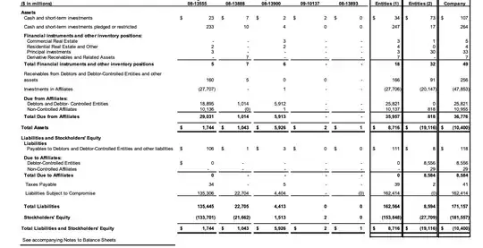 Look at the assets. The total assets are negative too (due to losses in "invesdtments in affiliates"). Since equity is assets - liabilities, it makes sense that equity is negative.