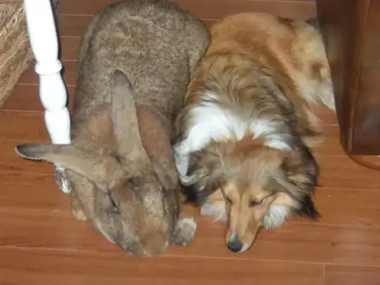 So we're comparing the European rabbit with the pet "version". They are actually the same species. The European rabbit is Oryctolagus cuniculus, whereas the pet are Oryctolagus cuniculus domesticus. In general, this means that they are pretty similar (mostly), especially in bodysize.