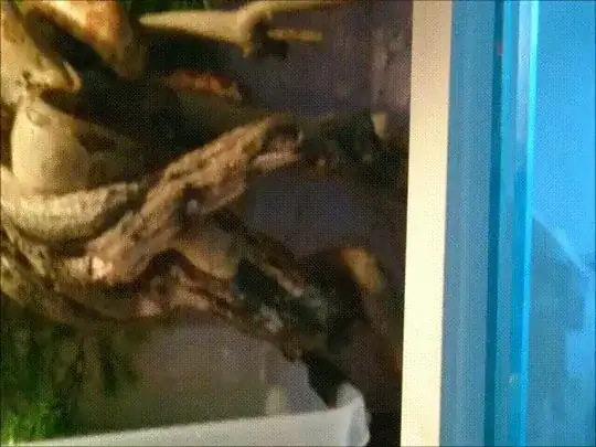 This can be seen in the gif below. This is my Boa's reaction to food in its enclosure. You can see their immediate attention. You can see her tongue-flicking and essing up. But the two most important things to take away here are that she moves her head towards any movement and actively follows it, along with creaping forward. This shows a great deal of interest, and her going forward towards the movement is a great tell that this is not a defensive posture.