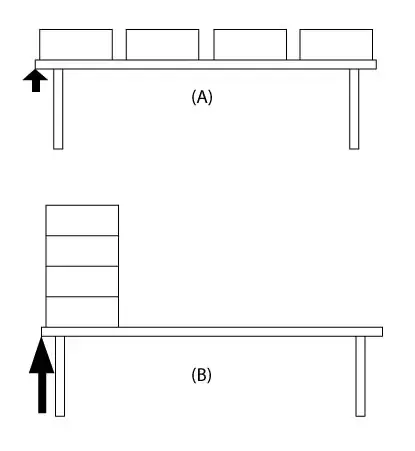 For instance, in the figure bellow, trying to lift up table (A) would be easier than table (B).