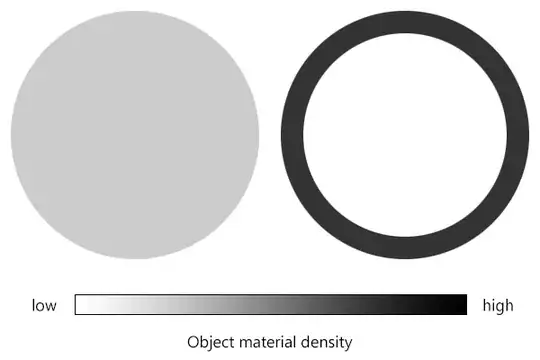 Now the two sphere have same radius, but different mass distribution. If all the mass is concentrated along the radius, the angular momentum measure is definitely going to be larger than the angular momentum of any other points with smaller radius.