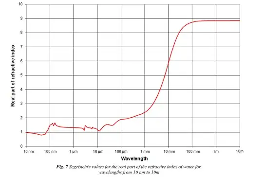 Provided that the electron & the atomic beams also exhibit refraction,it seems that this is a particle's property.Refraction index is proportional to particle's mass/size for specific medium.Photon behaves as particle in this effect.Mass is given by de Broglie equation:m=hv/c^2 , v=frequency.Thereby,light photons have more resistance in their motion inside water and going slower than microwaves.