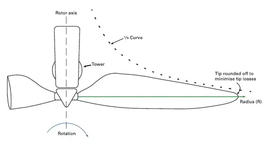 effect on the wind over the whole rotor disc (i.e. the tip slows the wind to the same degree as the centre or root of the blade). This ensures that none of the air leaves the turbine too slowly (causing turbulence), yet none is allowed to pass through too fast (which would represent wasted energy).