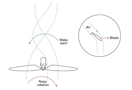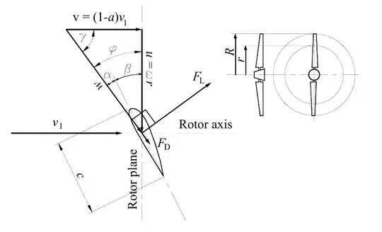 Furthermore remember that the equal and opposite force is exerted on the fluid. As the blades generates torque, they would have an equal but opposite effect on the air. So the air downstream would have a swirl. That swirl represents lost power so reduces the available power that can be extracted from the wind. Lower rotational speed requires higher torque for the same power output, so lower blade speed results in higher wake swirl losses.