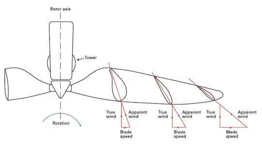 So these airfoils allow us to generate lift even at high rotational velocities, but why not operate the turbine at low speeds? Because power is speed $\times$ force and to obtain the same power we need to operate them at higher forces which increases the load on the structure necessitating costly materials. And to increase the lift we need more chord length which increase weight of the blades, increasing the load on the structure again.