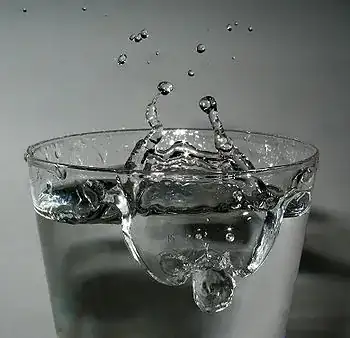 When a drop of water falls into a reservoir of water from a high enough altitude, water droplets will splash (image credit):