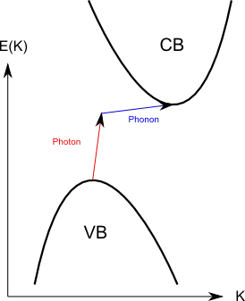 However, I learned that in indirect-band-gap semiconductors, we need phonons to provide the crystal momentum transfer to allow electron transitions between the top of the valance band and the bottom of the conduction band. Along with absorbing or emitting photons, of course.