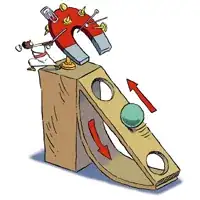 Wilkins overcomes this with an additional ramp at the bottom, which by converting the linear motion into angular motion which reverses the direction of the ball and conserves that kinetic motion to move the ball partway up the ramp. Even so, this is not enough to overcome gravity, and friction, and the counter force of an induced current to enable it to pull the ball all the way up, while being weak enough to allow the ball to drop through the hole. I believe, but have not tested or proven, that perhaps a reduction of gravity would make this machine feasible, like on the moon. It appears also, that because the ball is made of metal that is attracted to the magnet, the forces in the ball can set up a induced current counter field, due to the material the ball is made of and its in the field. A reverse lenz effect is present that would also contribute a force the magnet would have to overcome. This would require a superfine balance between a completely attractive force, and the opposing forces. The machine looks very promising; but, on a very subtle level has counter forces from gravity, friction, and a reverse lenz effect which counter the kinetic energy built up in the balls motion which pretty much stop the action from perpetuating fairly quickly.