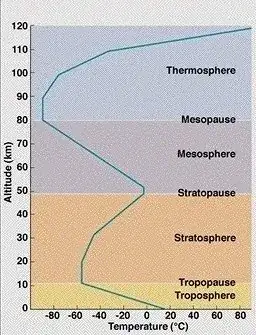 Tall as it is, even Mount Everest doesn't extend into the stratosphere. This is a question about the lowest layer of the atmosphere, the troposphere. Temperature in the troposphere generally (but not always) decreases with altitude because of four key factors:
