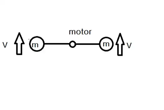 This is my somewhat crude attempt to show how the motor and masses move. The dashed line shows where the centre of mass is. This assumes the masses weigh more than the motor, so the motor moves more than the masses do: